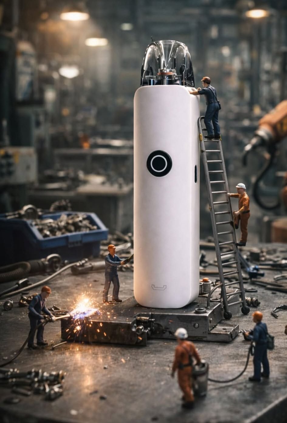 A stylish RGB LED light at the base of the device displays battery level, operational status, and alerts. A single press shows battery information clearly across three levels, combining functionality with a modern visual touch.